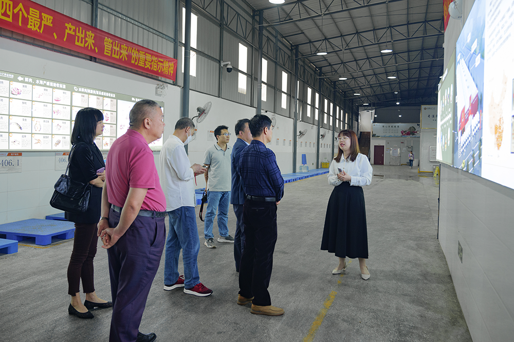 3月20日下午,广东省福建商会常务副会长颜龙坤、蔡惠志,法律顾问郑大梁以及秘书处一行走访我司参观交流,我司集团董事长兼广东省福建泉州商会会长黄金盾、集团副总裁黄文才、商会执行会长林辉强等人热情接待,在粤闽籍老领导受邀参加本次走访交流活动。在我司集团客户服务部张倩莹的陪同下,来访团参观预制菜生产车间,详细了解企业的经营情况以及业态情况。