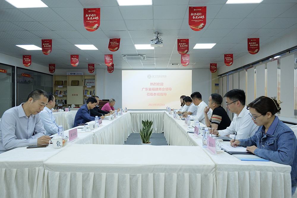 3月20日下午,广东省福建商会常务副会长颜龙坤、蔡惠志,法律顾问郑大梁以及秘书处一行走访我司参观交流,我司集团董事长兼广东省福建泉州商会会长黄金盾、集团副总裁黄文才、商会执行会长林辉强等人热情接待,在粤闽籍老领导受邀参加本次走访交流活动。在我司集团客户服务部张倩莹的陪同下,来访团参观预制菜生产车间,详细了解企业的经营情况以及业态情况。